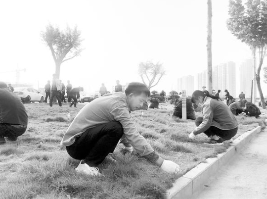 10月22日下午3时许,我市一家房产企业50余名员工走上街头,给路边的绿化带清除杂草,为建设美丽周口贡献一份自己的力量。