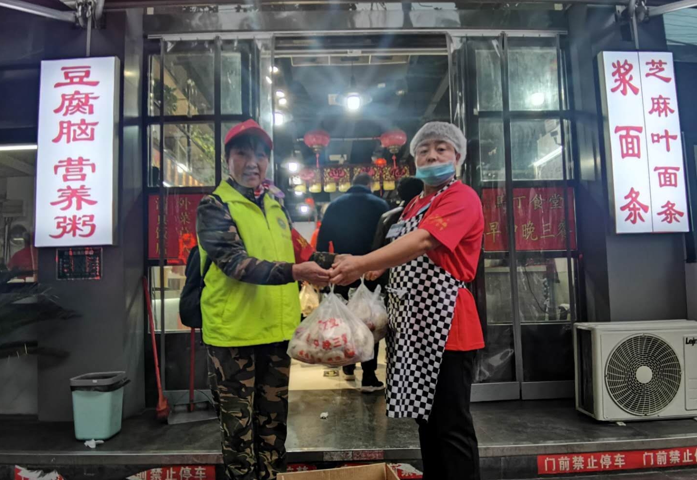 志愿者王新爱和顾连云得知爱心企业愿意提供早餐,他们早上6点就来到了马丁餐厅五一路捐赠处取餐。随后,把早餐陆续送到志愿者服务点。吃着美味的早餐,志愿者的心里暖暖的。