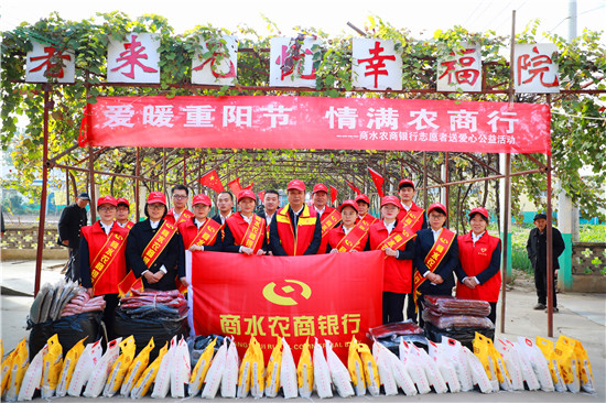 这是商水农商银行纪委书记、监事长张宇带领该行志愿者服务队正在开展“爱暖重阳节 情满农商行”走访慰问活动。