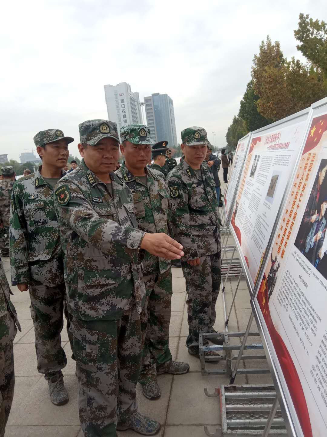 10月26日上午,周口市和谐广场上口号嘹亮、步伐铿锵、队伍整齐,正在周口市民兵训练基地参加轮训备勤任务的西华县近200名基干民兵,整齐列队,集体参观由市委、市政府、市军分区联合举办的“铭记伟大胜利 捍卫和平正义——纪念中国人民志愿军抗美援朝出国作战70周年主题展览”。