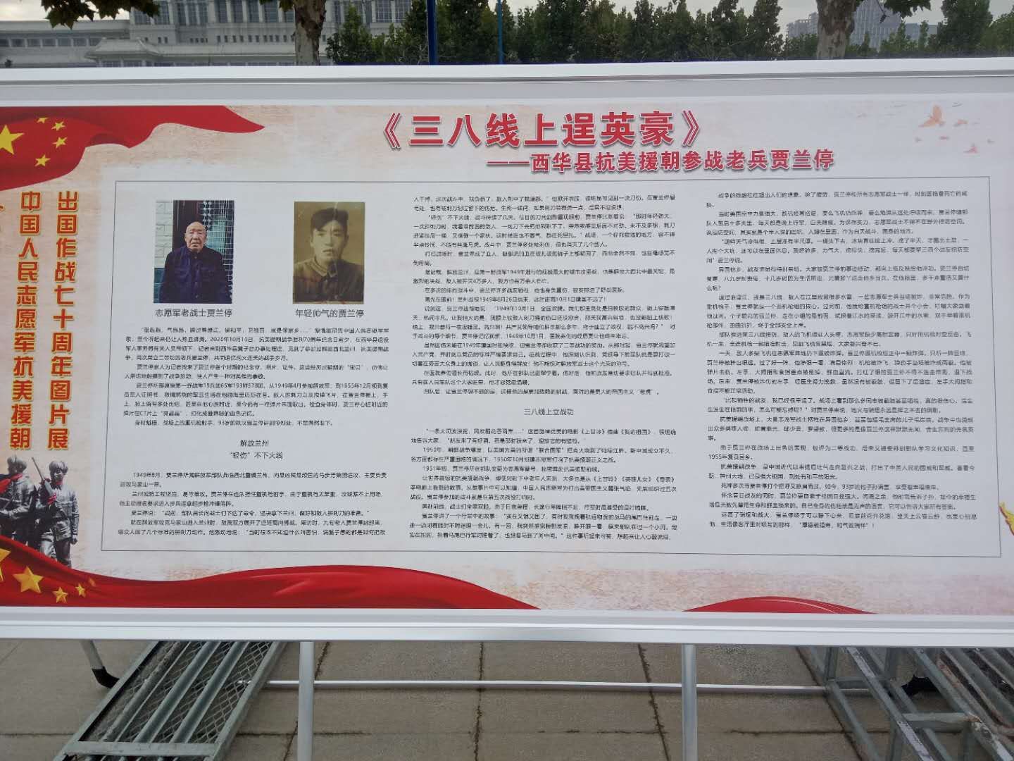 在《三八线上逞英豪,西华县抗美援朝参战老兵贾兰停》英雄事迹展板前,民兵们仔细地看了一遍又一遍,深受感动。“为了国家和民族,为了和平与正义,这位西华老战士奔赴异域疆场,与强敌殊死较量,事迹可歌可泣,感人至深。我们要以这位本县老乡为榜样,守初心、担使命,继承和发扬老一辈的革命精神、光荣传统和优良作风,进一步弘扬伟大的爱国主义精神,让红色基因代代相传。”来自县公路局的基干民兵樊丽动情地说。