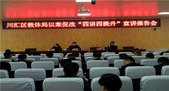 10月27日上午,川汇区教育体育局根据区委、区纪委、区纪委监委统一安排,组织开展以案促改“四讲四提升”宣讲活动。区教体局党组书记徐德志主持活动。区委党校教员李爱芬主讲。区教体局全体工作人员、局属二级机构负责人、全区各中小学幼儿园校长、园长参加活动。