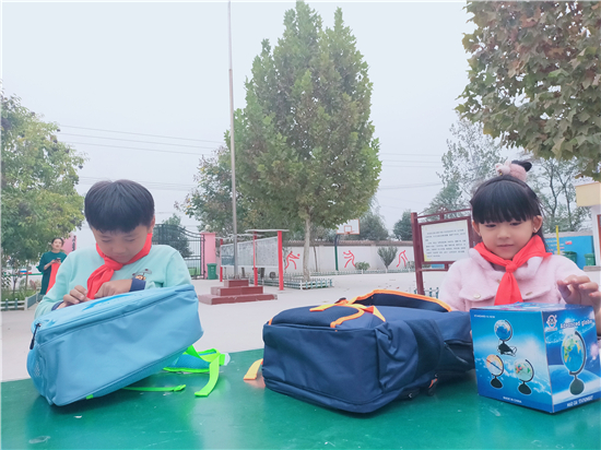 放飞梦想,让爱翱翔。10月27日下午,西华县东王营乡朱营小学的孩子们每人获得一个大礼包,里面有书包、望远镜、地球仪等,这是我市一家公司以“关爱儿童健康快乐成长”为主题开展的“小海豚计划”。