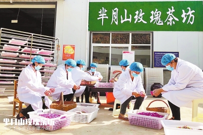 银杏树沟村村民在村扶贫车间分拣玫瑰花 |