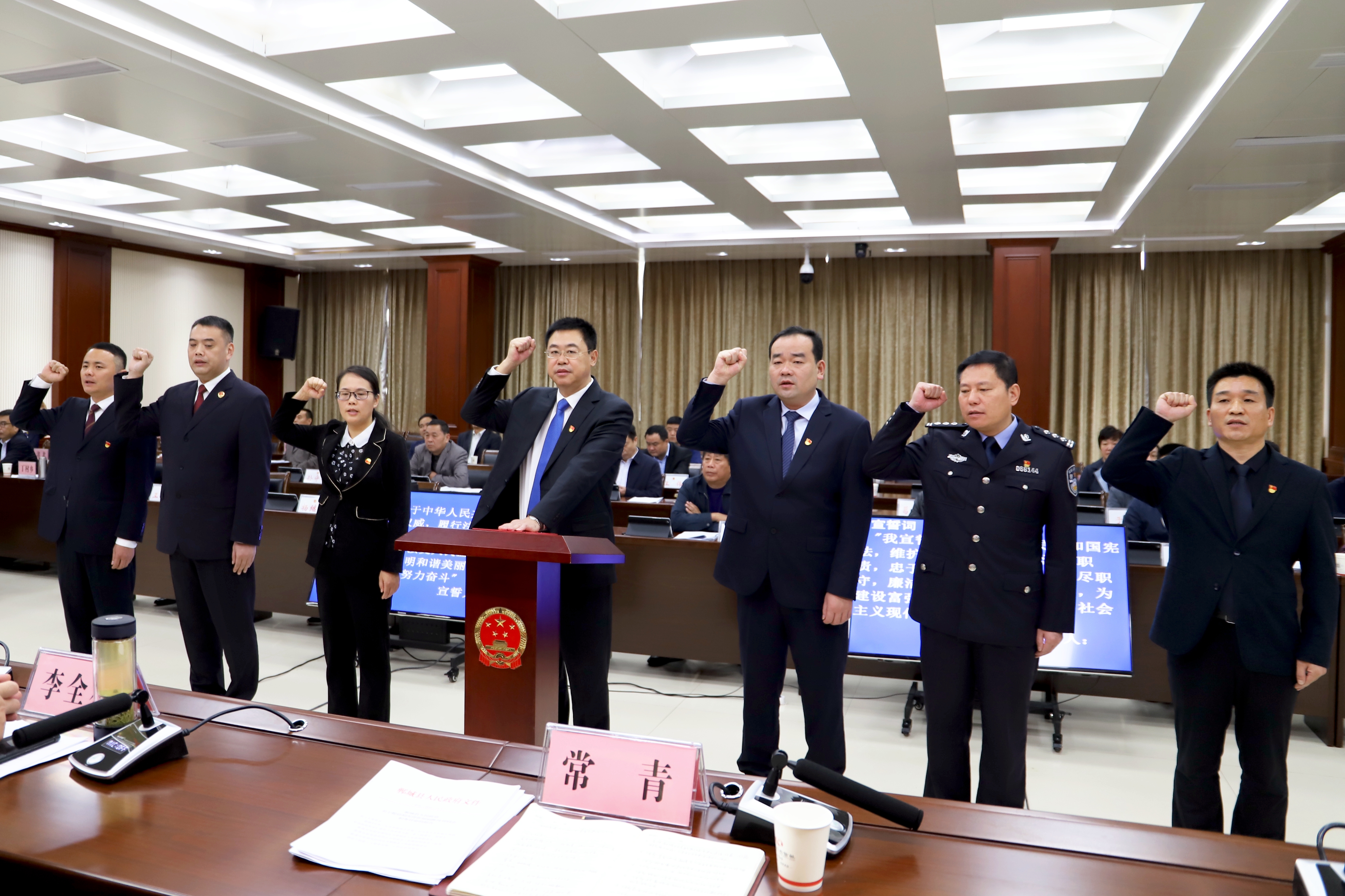 李建军向新任命同志颁发任命书;在县人大常委会组成人员监誓下,新任命的同志由常青领誓向宪法进行了宣誓。