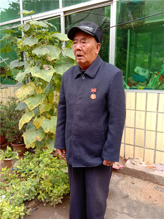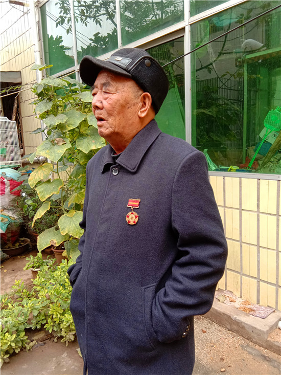 快到王景文家时,记者与他取得了联系,没想到他竟到路口来迎记者,看到他硬朗的身板和健康的身体,听他说话声音洪亮、底气十足,记者还是很欣慰的,毕竟经历了70年的风雨洗礼,还能行走自如、声如洪钟,的确是宝刀不老。被他迎进家,其老伴满头银发,喜眯眯地让记者进屋,王老先生去里屋找出了一枚抗美援朝纪念章,并说抗美援朝和平纪念章等物品都放丢了,找不到了,有些遗憾。记者就开门见山地说要听他讲讲参加抗美援朝的故事,他不好意思地笑了:“讲不好,年龄大了,记性不好,有好多事都记不清了……”当问起他老家是哪里时,王老先生还是打开了话匣子。1934年,他出生在淮阳县刘振屯乡耿楼大队李楼村,由于家境贫寒,他从小就跟随家人一路逃荒要饭来到了扶沟,但日子还是艰难,为了能活命,父母无奈把他送给了扶沟县城一户人家,从此他就成了这户人家的孩子,并于1951年5月结婚。可结婚没几个月,县里就开始征兵了。当兵离家,要丢下妻子,更何况妻子已有孕在身,他真舍不得;保家卫国,是义务是责任是担当,他责无旁贷。家与国,他毅然选择去当兵。与新婚燕尔的妻子依依惜别,他踏上了行军的征程。那时可没有车接送,去往目的地,全靠两条腿,行军与训练的苦与累难以想象。问他不害怕当兵打仗吗?他回答:“不怕!”语气坚定而有力。生活的磨难让他对安稳的生活有一种渴望,他明白战争会让国家陷入混乱不堪的局面,老百姓的生活会更加艰难,为了祖国的和平安宁和兄弟姐妹的幸福,他愿意去当兵打仗。保家卫国的种子早已种在了他的心里。