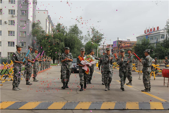 2018年,他积极备战,炎炎夏日把每个动作反复练、练反复,手裂出了伤口,绑起纱布接着练,脸上被晒的又红又肿只为了当初的誓言,最终他以压倒性优势取得全师第一名的好成绩。