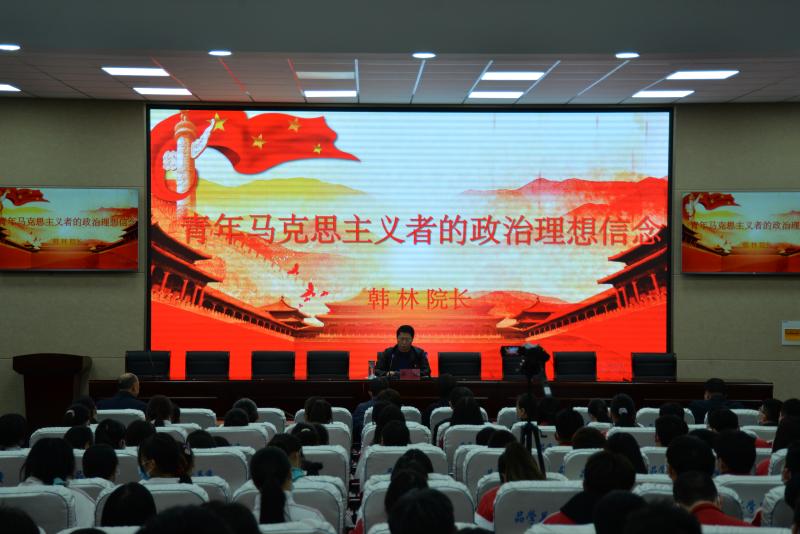 开班仪式结束后,周口技师学院院长韩林以《青年马克思主义者的政治理念信念》为题,为学员们上了第一课。