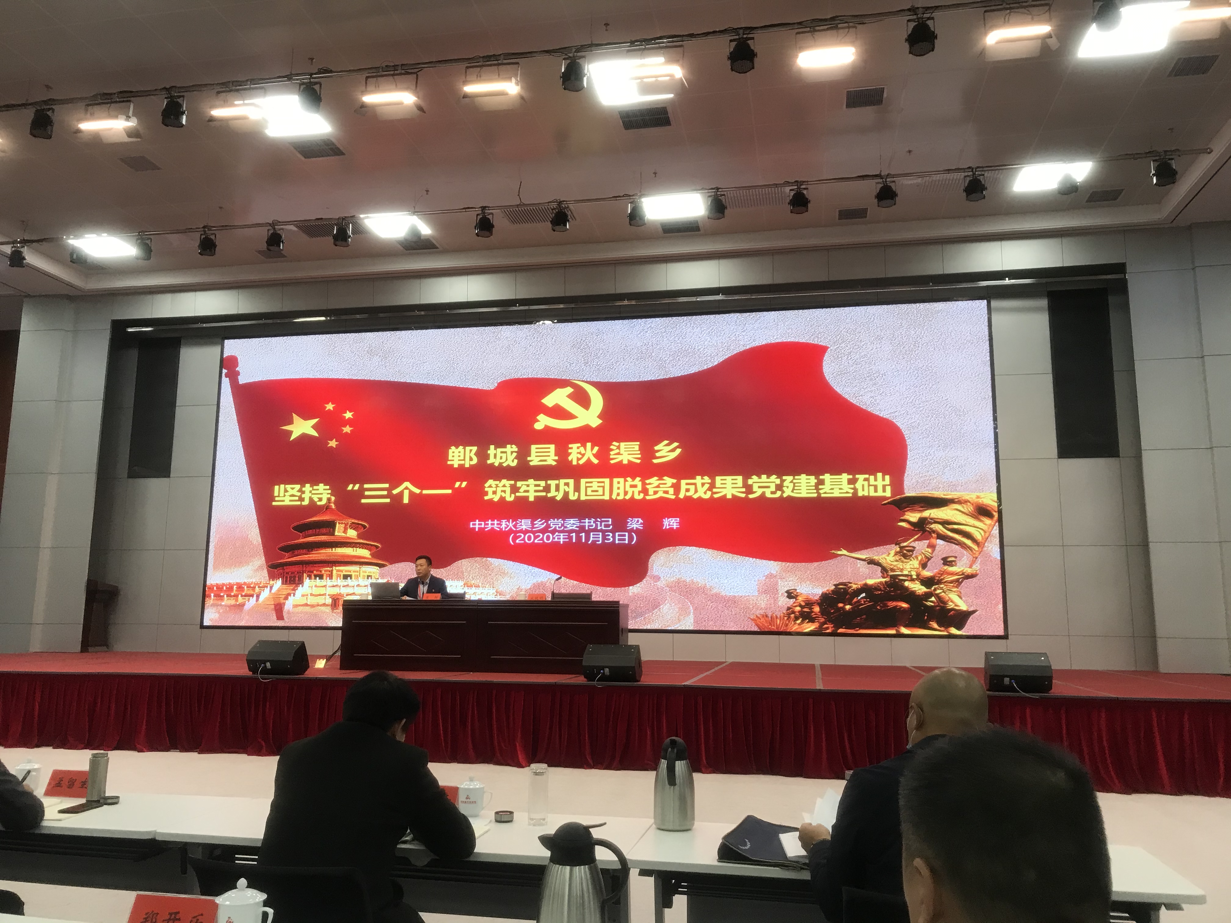 11月3日,全省脱贫攻坚任务重的乡镇党政正职培训班在红旗渠干部学院开班。今天上午,参加培训的郸城县秋渠乡党委书记梁辉以《坚持“三个一” 筑牢巩固脱贫成果党建基础》为题,介绍了秋渠乡抓党建促脱贫的经验做法,获得众多乡镇党政“一把手”好评。