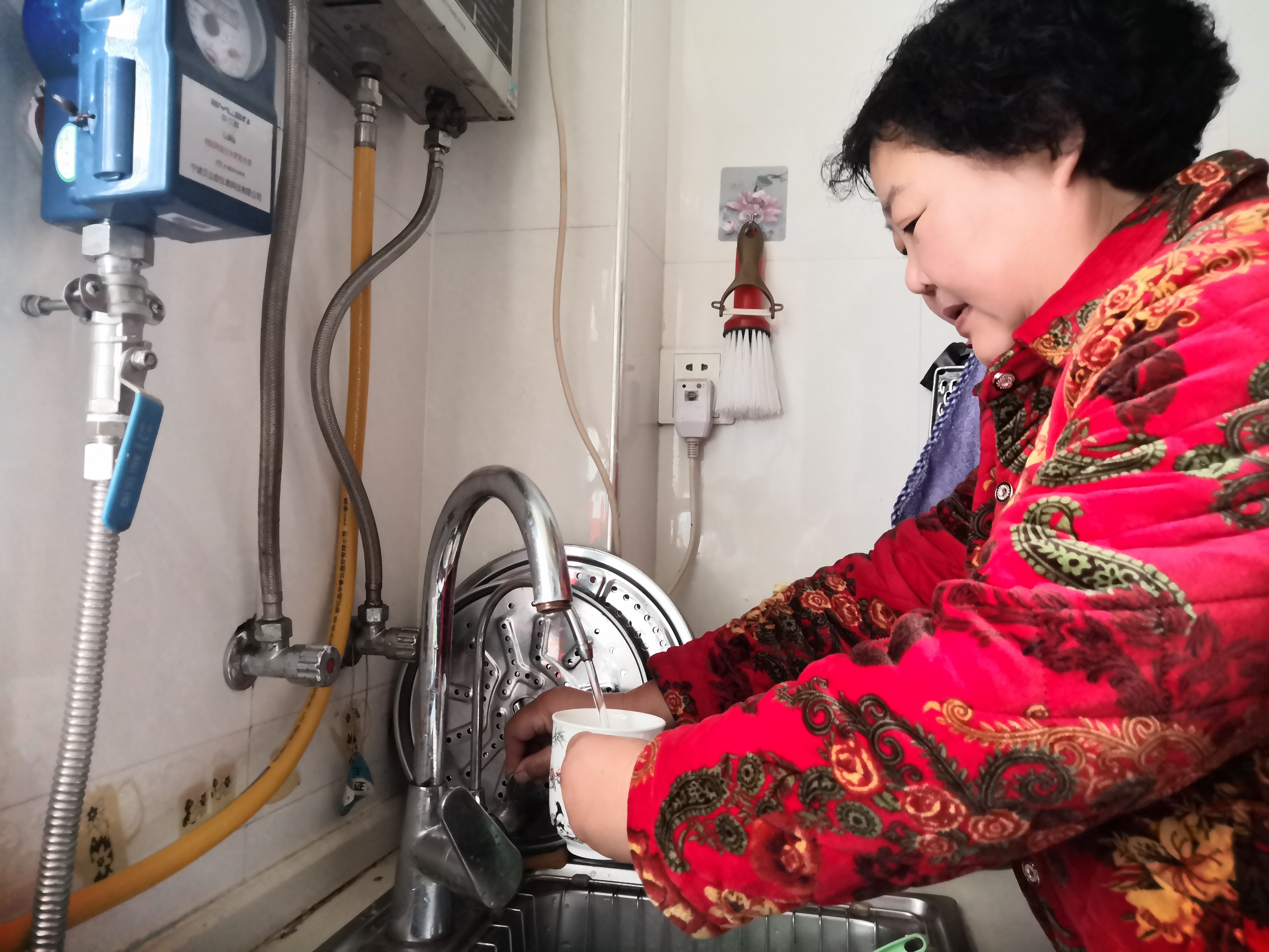 西华县温泉花园小区业主尹小月女士家中使用优质管道直饮水半年之久,厨房的淘菜池旁安装了两个水龙头,一个输出自来水,另一个则是优质管道直饮水。“自来水用来淘菜、洗碗,直饮水用来喝水、做饭。“现在再让我喝自来水就感觉有点涩。”说着,她拿起水杯接了一杯直饮水,一饮而尽。“3毛钱一升,比桶装水便宜,普通老百姓都喝得起”尹女士道。