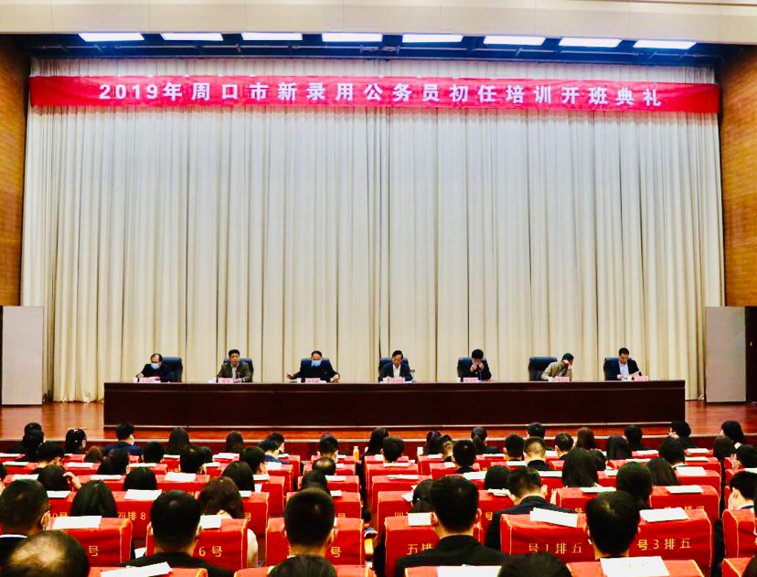 11月6日,周口市2019年新录用公务员初任培训班在市委党校报告厅开班。省委组织部公务员二处处长宋海民、市委组织部常务副部长杨雪芹作开班讲话。市委组织部副部长、公务员局长徐飞主持开班式。市委党校常务副校长孟庆武、省委组织部公务员二处副处长张予庆出席开班式。来自市直机关和各县市区的431名新录用公务员参加培训。