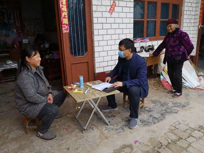 走访中,全体帮扶责任人分别深入各自帮扶贫困户家中,实地查看了生产收入、身体状况、住房医疗、扶贫措施落实等情况,逐一核对贫困户的扶贫手册,并认真填写了结对帮扶记录。与帮扶对象面对面沟通、心连心交流,不仅向贫困户宣传脱贫攻坚相关政策,还与他们促膝交谈,详细了解他们最近的生产生活以及目前存在的困难问题等方面情况,认真倾听贫困户对扶贫工作的意见和建议。鼓励他们要保持乐观积极的生活态度,坚定信心信念,在党和政府的政策指引下,积极发展生产,不断增加收入,争取早日脱贫致富。③2