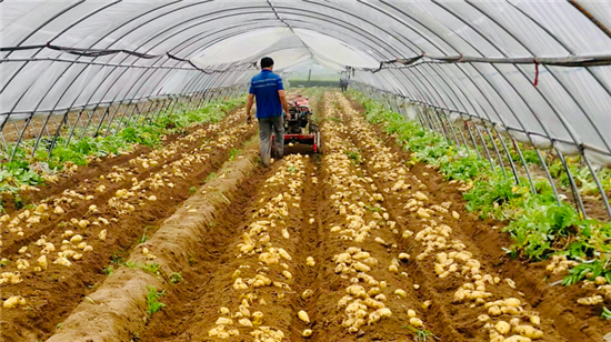 试点村宋岗、王村率先尝试钢架拱棚种植,春季在棚内种植土豆,夏季养殖豆虫,秋季种植糯玉米、水果玉米、小尖椒、有机花菜等,“三季连作”,立体化种植。当年,这两个村的群众收成喜人,收入翻番。