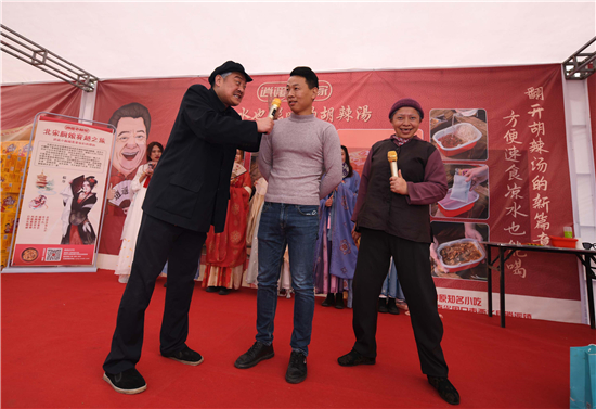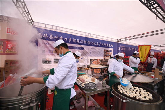 16日上午,在西华县举办的“中国·西华胡辣汤大赛”现场,一边是48家顶级胡辣汤店同台对决,滚滚香汤,让人难耐垂涎。而在赛场外的展销区,来自西华县的胡辣汤店免费做汤、包子、油条,让逛大赛的人们随便吃,过足瘾!记者在现场看到,派送美食的店铺前,排成长长的队伍,胡辣汤店七八个师傅,现场忙碌着做美食,人们吃着喝着,大呼过瘾,身在胡辣汤之乡,让人沉醉在美食的盛宴中。记者看到,有的商家还请来“赵本山”“宋丹丹”为大赛现场助阵。①15