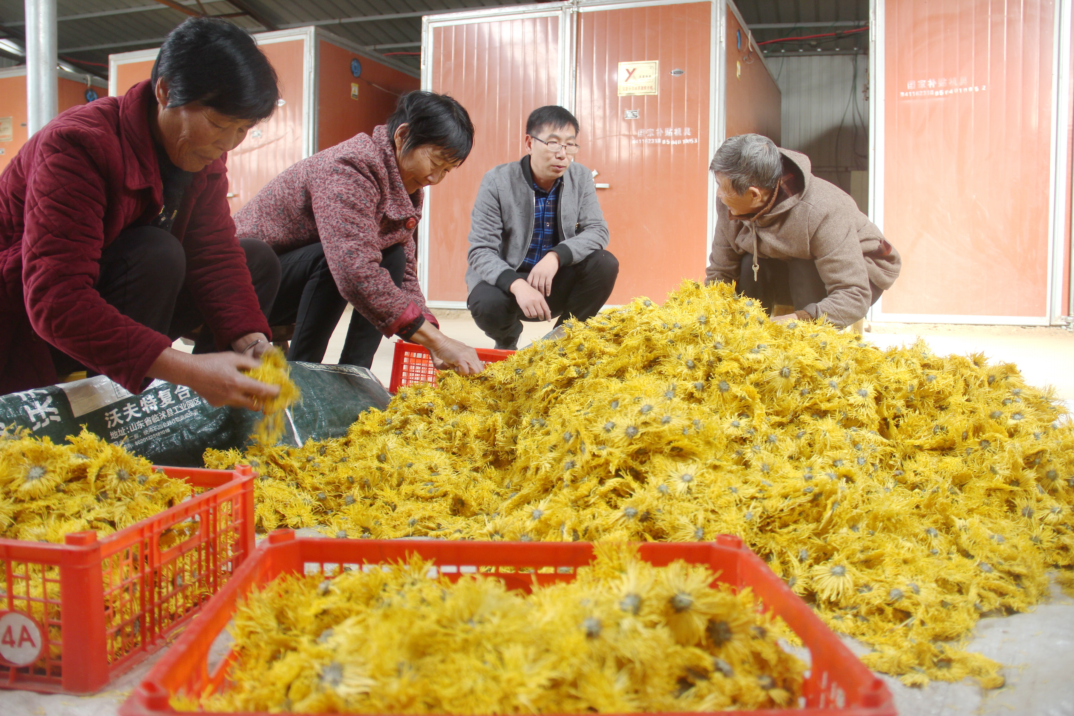 11月9日,在商水县郝岗镇大路李村金丝皇菊种植合作社,镇干部杨占民了解贫困户金丝皇菊种植情况。该镇在脱贫攻坚中,积极牵线搭桥,帮助大路李村委负责人李华生引进种植金丝皇菊,带动贫困户脱贫致富。