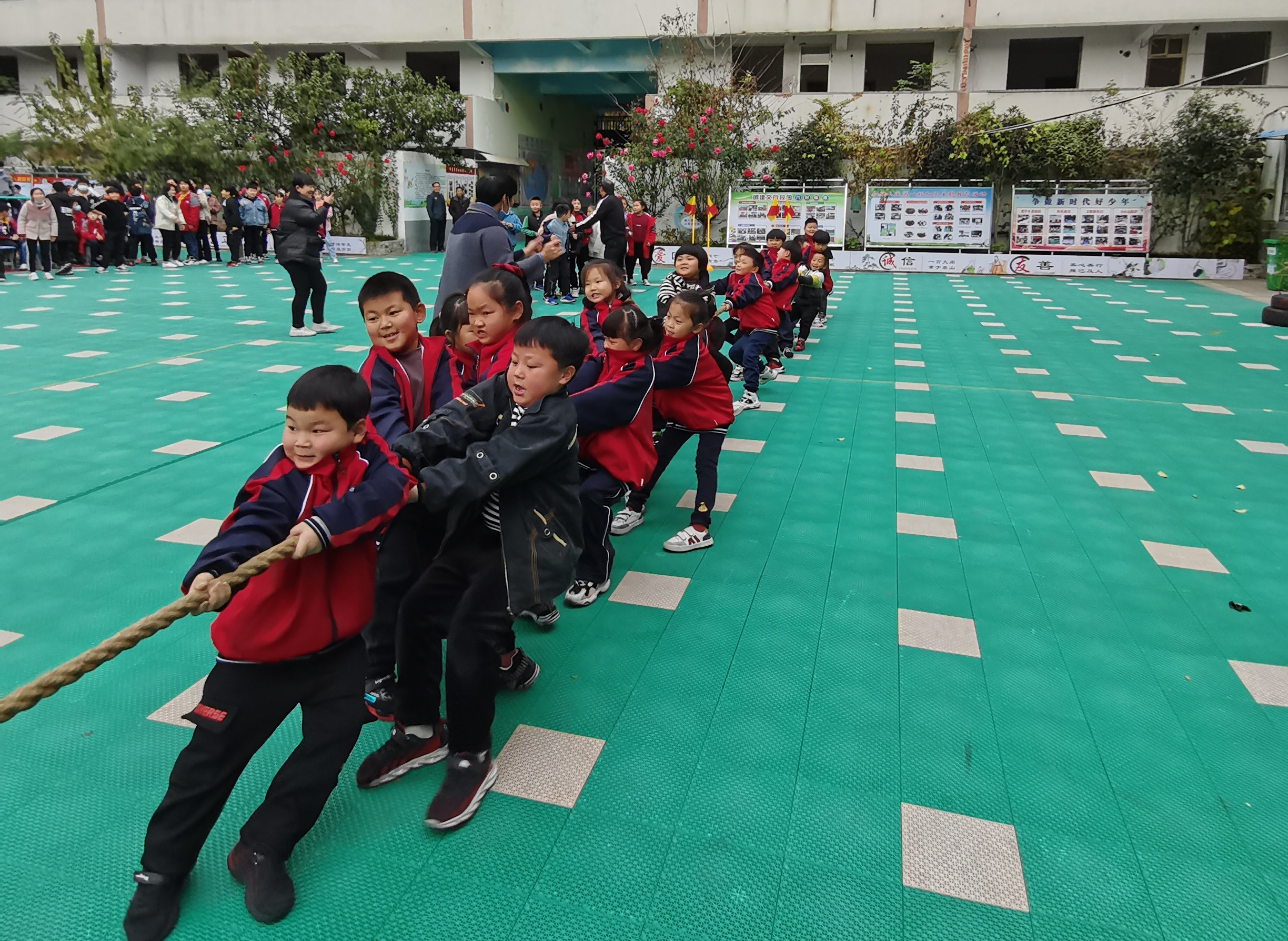 “加油、加油”在此起彼伏的欢呼和加油声中,拔河比赛开始啦!同学们在克服困难、顺利完成比赛后体会到发自内心的胜利感和自豪感,获得人生难得的团队体验。小运动员们做到“胜不骄,败不馁”,充分展示了川汇区青少年学生昂扬向上的精神风貌。