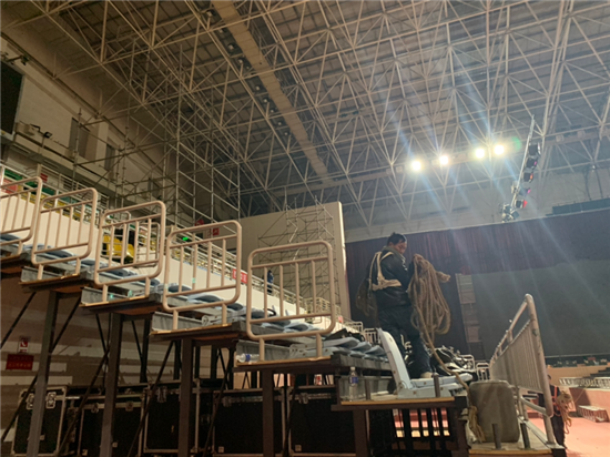 11月24日晚,记者在周口市体育馆见到,由马艳丽领衔回馈家乡的周商大会国际时装秀舞台正在搭建中,据正在施工的工人介绍,他们每天加班加点布置舞台,预计26日舞台调试完成,27日开始彩排,28日晚正式开启时装秀。