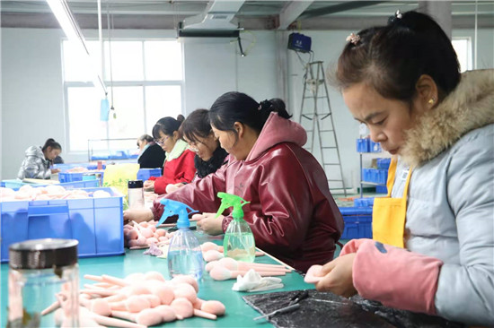 河南雅彩美妆用具有限公司负责人赵广才介绍,公司主要从事化妆刷、美妆用具加工,十分适宜留守妇女干。车间里的工人基本都是贫困户和住在附近的留守妇女。在家门口上班,既能挣钱,又方便照顾家人。每天中午公司还提供午餐,工人早上来上班,下午下班不耽误回家照看孩子。“我上班已经10多天了,再过不久,就可以领工资了,真是高兴!”68岁的村民张美荣告诉记者,家里孩子们都大了,自己在家闲着也没啥事,她就到包装车间上班,一个月算下来能挣2000多元,活也不重,既锻炼了身体,又提高了家庭收入。