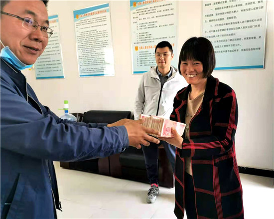 提及此事,高古洞村村民陈女士满含热泪。她说,今年4月份,她在该县一家皮毛公司打工,因工作不慎造成右手受伤,在医院看病花了不少钱。后来,多次找该公司老板协商赔偿未果。遂申请该县人社局劳动仲裁,要求依法裁决被申请人赔偿申请人50万元。该县政府办纪检监察组了解这一情况后,及时跟踪督导案件仲裁办理情况。经该县劳动仲裁执法人员多次调解,双方达成一致调解意见,被申请人赔偿申请人各种损失313360元,当庭履行赔偿款11万元。双方当事人矛盾化解,握手言和。
