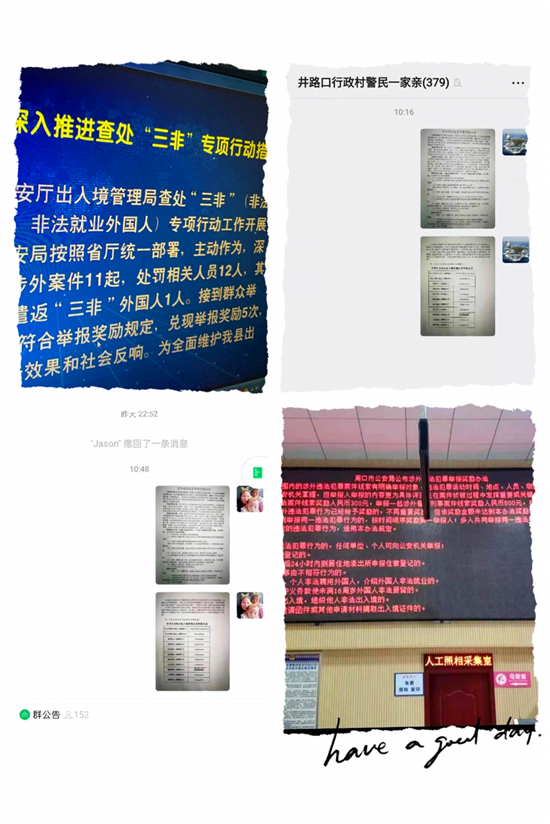 组织集中宣传。为全面提升宣传效果,郸城县公安局出入境管理科民警面对面向400余名群众讲解市公安局涉外违法犯罪举报奖励办法、国家移民管理局12项移民出入境便利政策措施和疫情防控常态化非常态管理等。同时,利用社区警民微信群、平安建设微信群、警务微信群、一村一警工作微信群等不间断宣传,并要求每日转发内容截图上报,进一步提高了人民群众的知晓率和参与度。