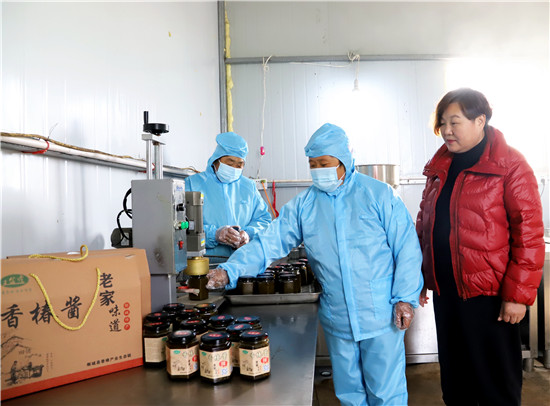 今年57岁的孙国秀、54岁的段素华就是梁老家村从贫困户序列走到香椿酱生产线,从而脱贫致富的典型代表。她们骨子里有“香椿辣椒酱”的味道,当然知道怎么样调制出来的酱“土”得地道。经她们的手调制的香椿辣椒酱不愁销路。