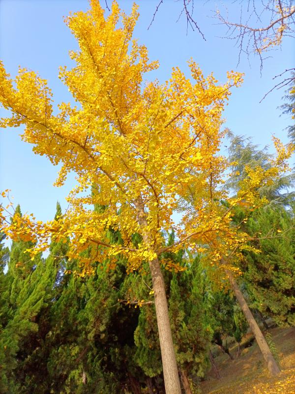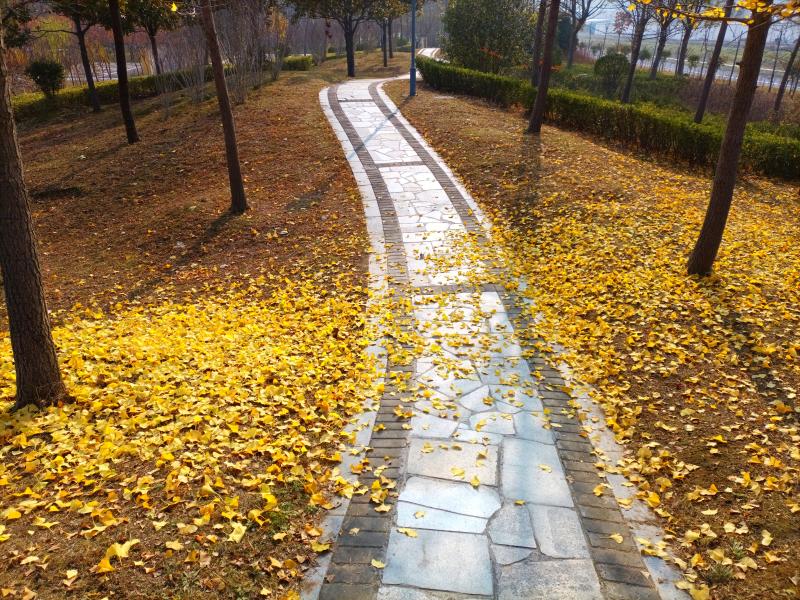 12月4日,久违的阳光照耀着三川大地,周口公园的银杏叶格外美丽,满树金黄色的叶子密密麻麻镶嵌在细长的树枝上,纤细的叶梗托着一片片小叶子,在风中摇曳翻转,构成一道亮丽的风景,煞是好看。