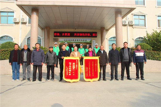 12月4日上午,西华县叶埠口乡洼赵行政村村民将一面写有“为环保尽心尽力 助乡村环境改善”字样的锦旗送到市环境保护协会会长孙彩云的手中,以感谢市环境保护协会的志愿者在村里开展志愿服务活动,以实际行动助力农村人居环境整治。