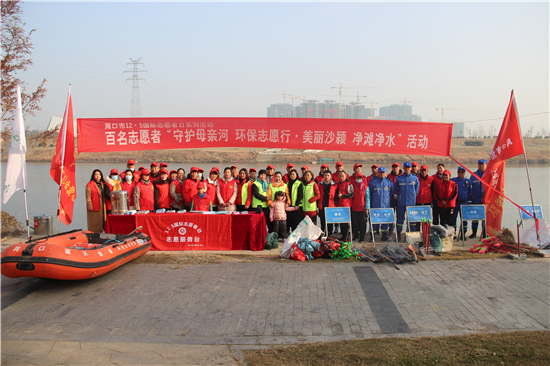 12月6日上午,由市文明办主办,市慈孝文化促进会承办,多家社会公益组织参与的12·5国际志愿者日系列活动之“百名志愿者守护母亲河,环保志愿行‘美丽沙颍·净滩净水’”活动,在沙颍河东方园林河段举行。