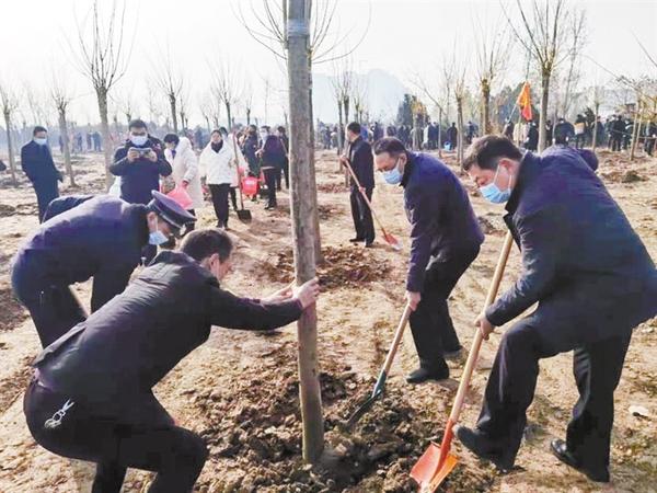 12月6日上午,开发区干部职工在沙颍河畔义务植树点义务植树。