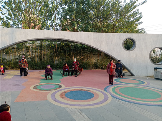 12月10日,虽然气温不高,可是天空暖阳高照,在周口中心城区建安路上的一个街头游园内,不仅聚集了前来休闲的老人,还有不少戏迷朋友,她们手拿话筒,唱起戏曲节目,让人乐在其中。记者 张洪涛 摄