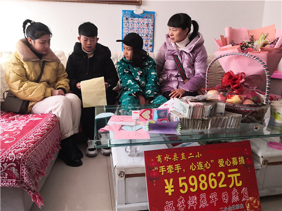 “此次爱心捐款活动,不仅体现了师生们博爱、奉献、团结、向上的高尚品质,还让学生懂得城区二小是个有爱的集体,大家是相亲相爱的一家人,风雨同路,共渡难关!”该校有关负责人说。②6