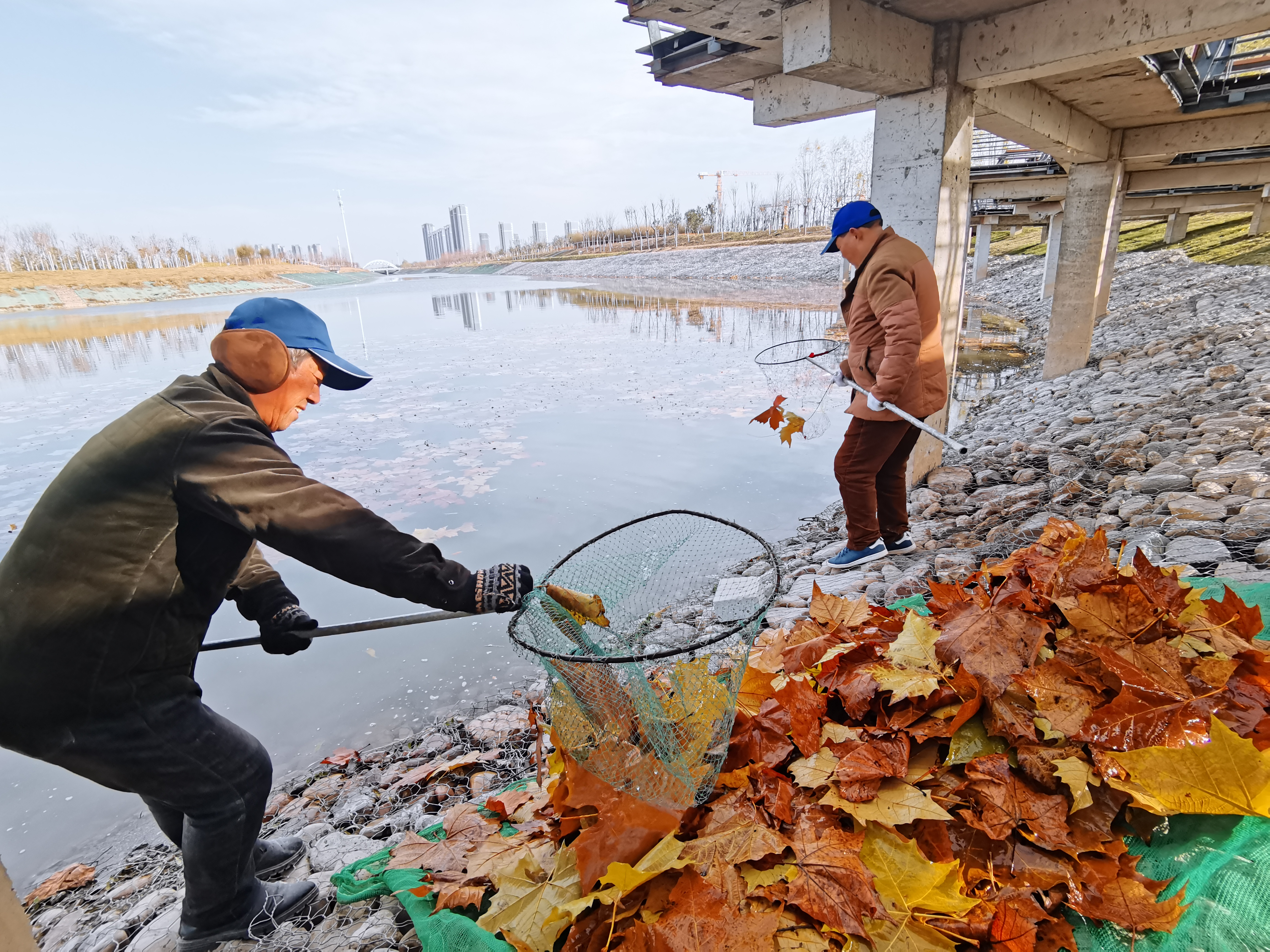12月14日,环卫工人在清理沙颍河水面上的枯树叶等垃圾。最近,我市气温下降,枯树叶纷纷落下,为了保持市区街道的干净整洁,环卫工人需要不断地进行清扫,任务十分艰巨。为防止清扫好的树叶被风刮走,环卫部门专门为环卫工人配血封闭式三轮车、大号编织袋,盛放枯叶,最后树叶由环卫工人送往垃圾中转站统一处理。