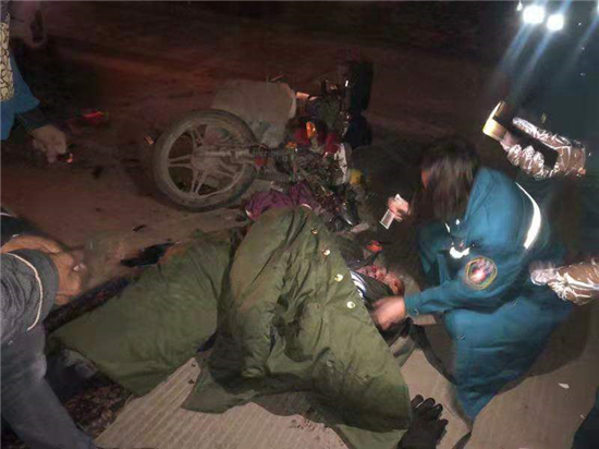 12月11日5时24分许,在商水县城巴路、汤庄乡大赵村扶贫服务点门口处,商水县舒庄乡吴庄村11组韩同首驾驶豫P1Z851号小型普通客车由西向东行驶时与相对方向行驶的舒庄乡北王张村9组张义来驾驶的无牌两轮摩托车发生交通事故,造成车辆损坏,张义来及无牌两轮摩托车乘车人张金在受伤。商水县交警大队与周口人和医院立即启动“警医结合”救治机制,开通绿色入院通道,采取零缴费先救治措施,对伤者迅速进行救治,伤者暂时还在救治中。此事故的伤员救治过程,充分展现了“警医合作”机制的优越性和可行性,伤者家属对公安机关和医院十分感谢。①15