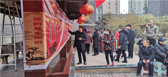 12月11日上午,在中心城区文昌大道的金色东方社区,川汇区文联举办的一场“零距离初心课堂”走进基层群众,普及党的知识,受到群众的喜爱。