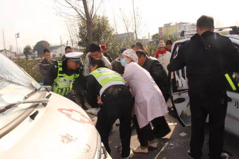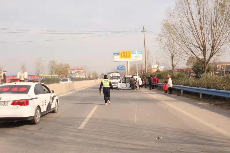 接到报警后,郸城交警大队122指挥中心快速启动“四位一体”联动机制,统一调度各部门分工协作,调度辖区外勤民警先期对现场进行管控,指派事故中队副中队长杨磊带领民警李洋、王勇迅速出警,同时联系120急救中心调度救护车第一时间赶往事故现场。