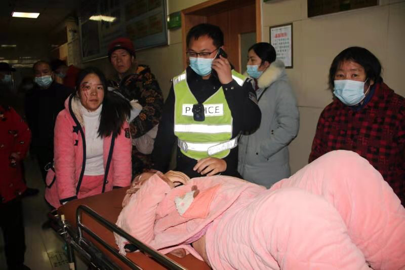 由于天气寒冷,民警第一时间赶到后,安抚伤者情绪,在事故发生地后方设置警示反光锥桶,将警车停放在事故点后方,以防发生二次事故。同时,民警协调各路口为救护车开通绿灯,让救护车第一时间赶到现场。