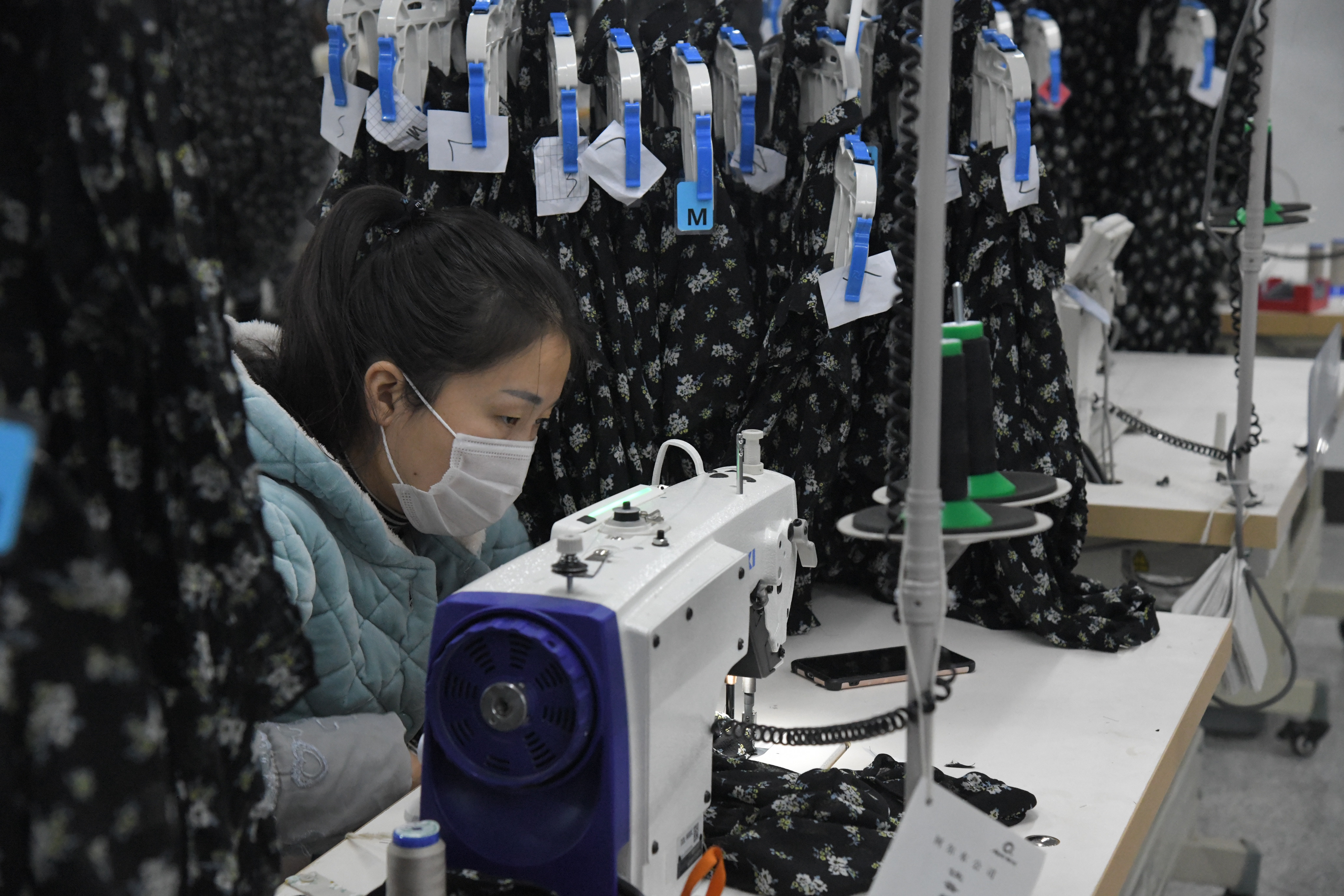 12月17日,在商水县产业集聚区雅戈尔盛泰纺织工业园一现代化车间内,纺织女工正在制作外贸订单服装。雅戈尔盛泰纺织工业园是周口市重点招商引资企业,总投资48亿元,占地2000亩,是集棉纺、面料、印染、成衣、进出口贸易、跨国经营于一体的大型综合生产基地,长期代加工雅戈尔、PVH等国际品牌。该项目一期已经投产,全部建成后将填补我市纺织服装行业缺少高端品牌的空白,促进我市轻纺工业的发展。