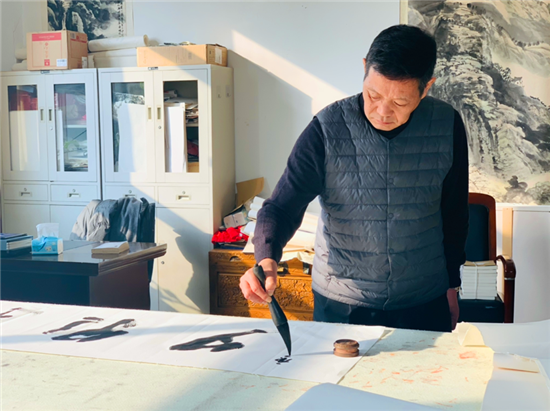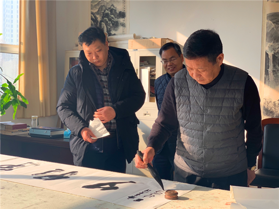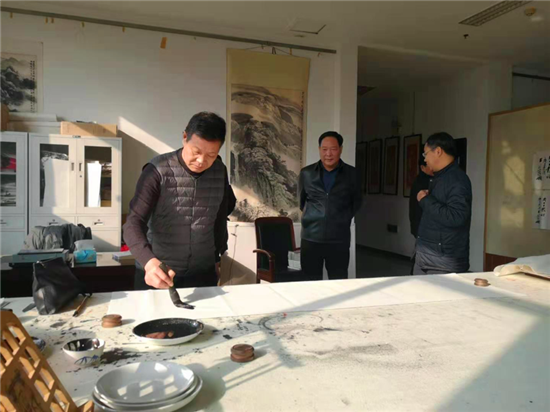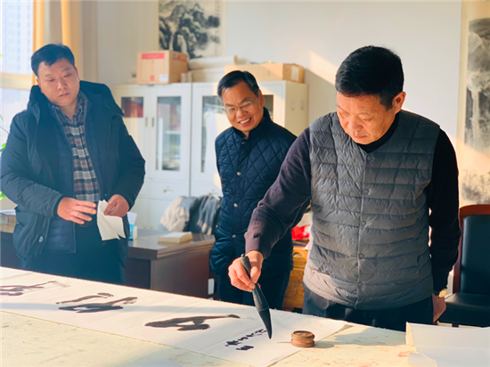 12月18日上午,著名书法家王学岭到周口报业传媒集团书画院参观指导。