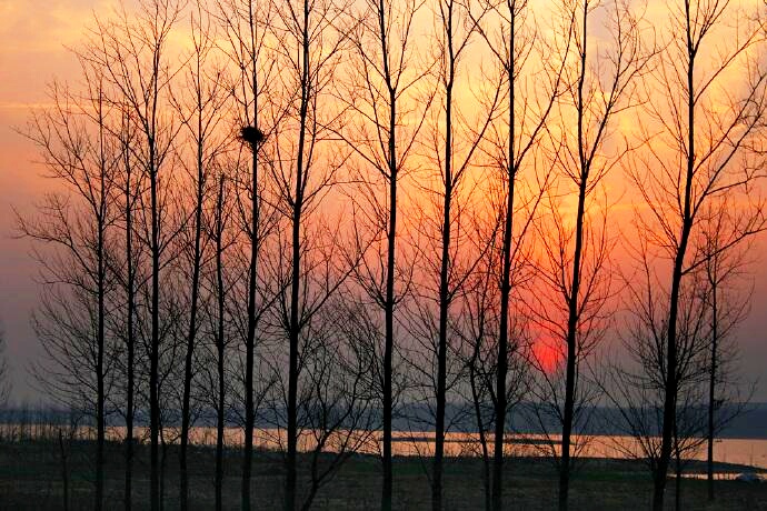 近日,我市天气晴朗,冬日暖阳格外让人欣喜。尤其是黄昏时分,太阳慢慢收敛起刺眼的光芒,从天际一点点垂落,和寒水、树枝一起,形成了一副绝美的画卷。③6