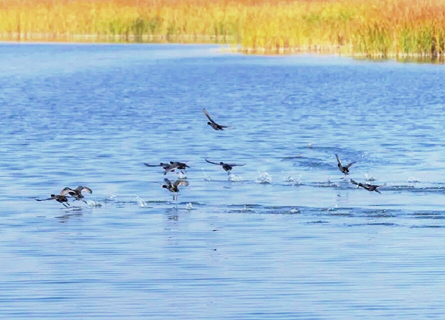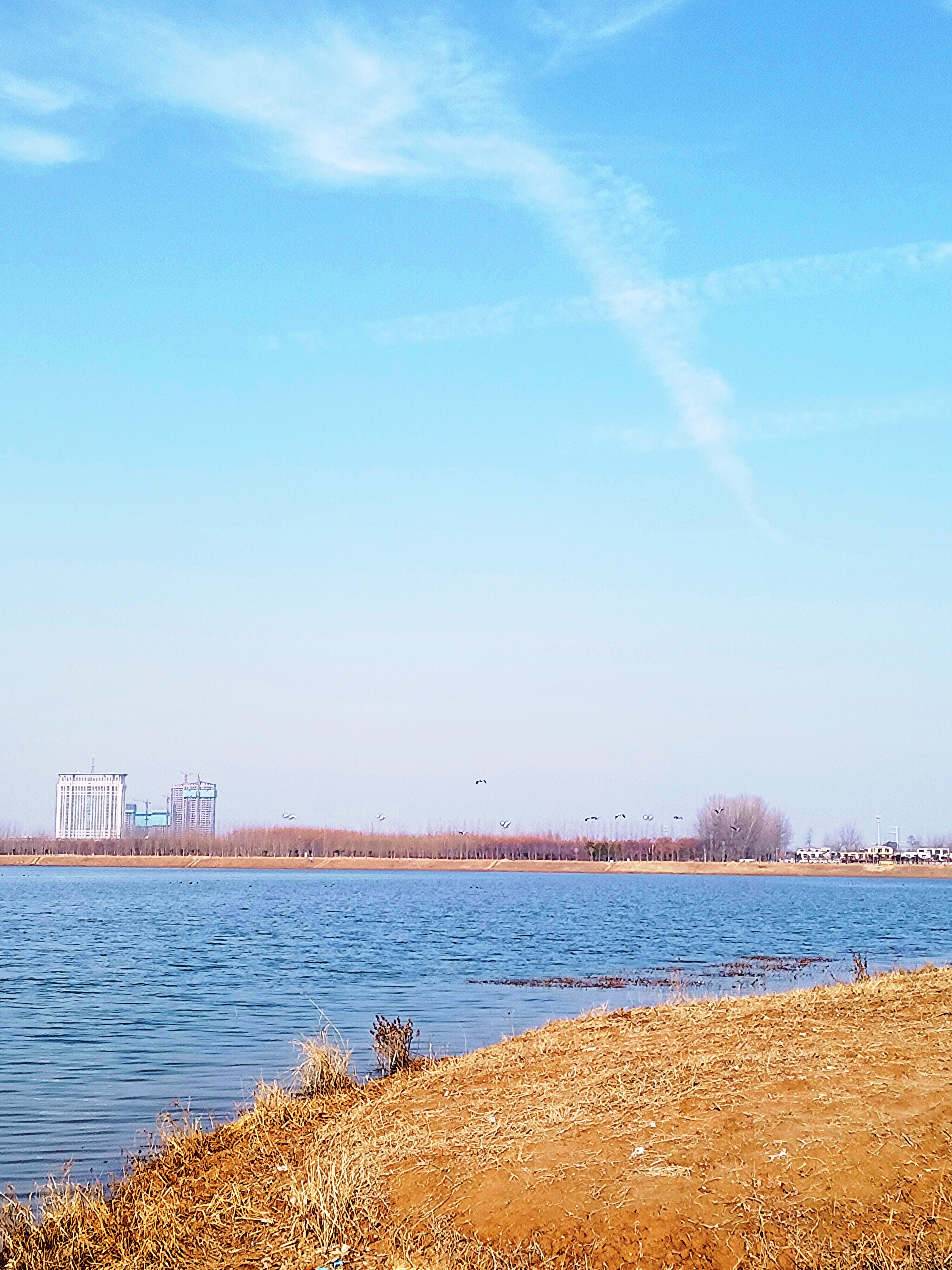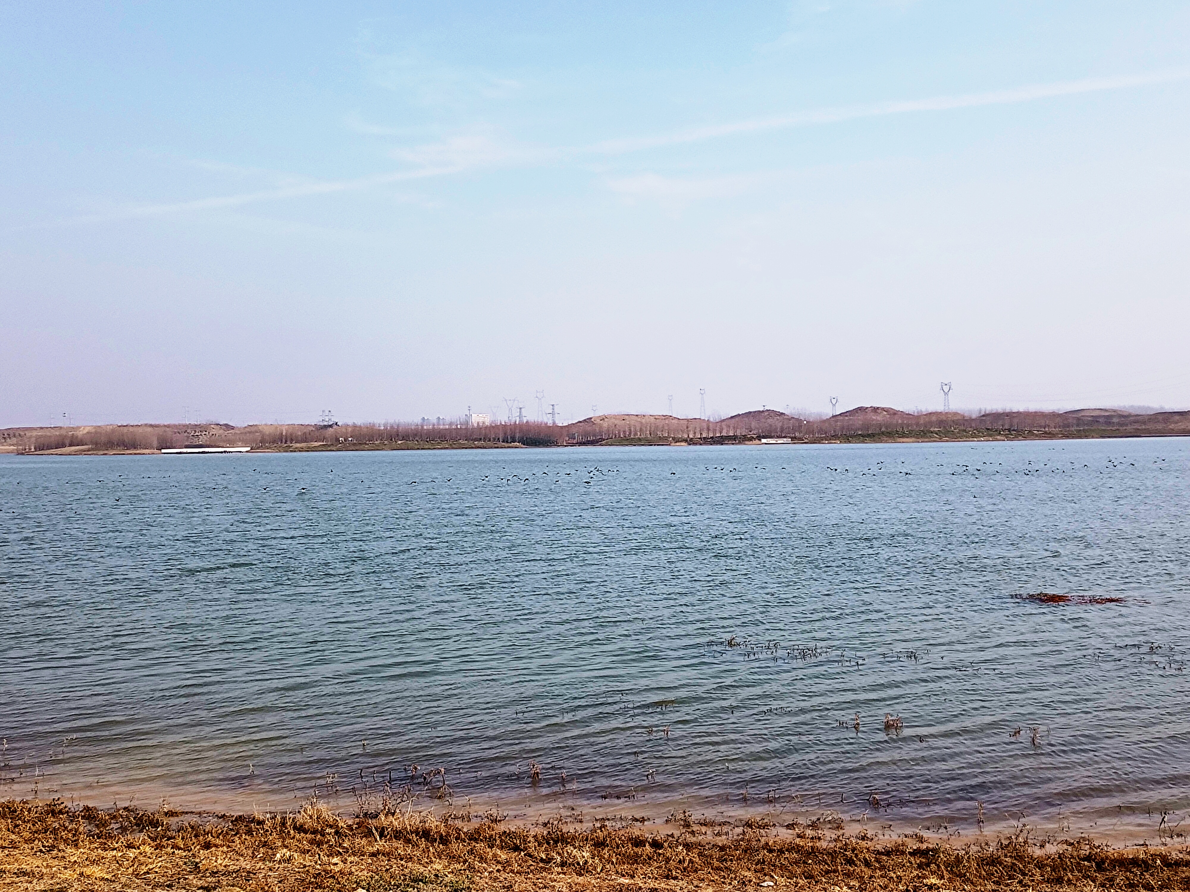 近日,我市天朗气清、惠风和畅,引黄调蓄工程天蓝水碧、水天一色的风景令人心旷神怡,其良好的生态环境吸引了很多水鸟前来栖息,如银镜一般的湖面上绿头鸭、赤麻鸭、白鹭、灰鹭等禽鸟成群结队,姿态各异。水鸟、湖水与蓝天交相辉映,风光旖旎,尽显诗意。