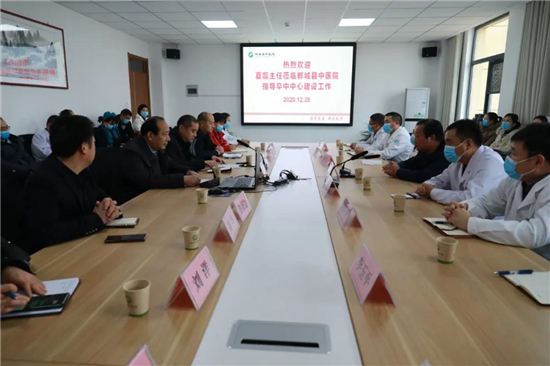 12月28日下午,周口市中心医院神经内科二病区主任、卒中中心医疗总监、主任医师夏磊到郸城县第二医疗健康服务集团县中医院现场指导卒中中心建设工作,全面查看该院卒中中心建设及发展情况。集团总医院副院长史昊、杨俊、曹子成及相关科室负责人参加工作汇报。史昊主持座谈会。