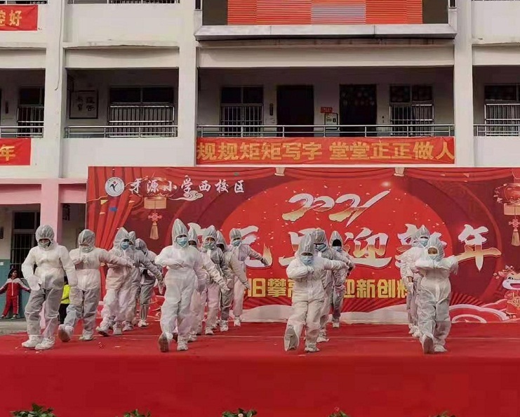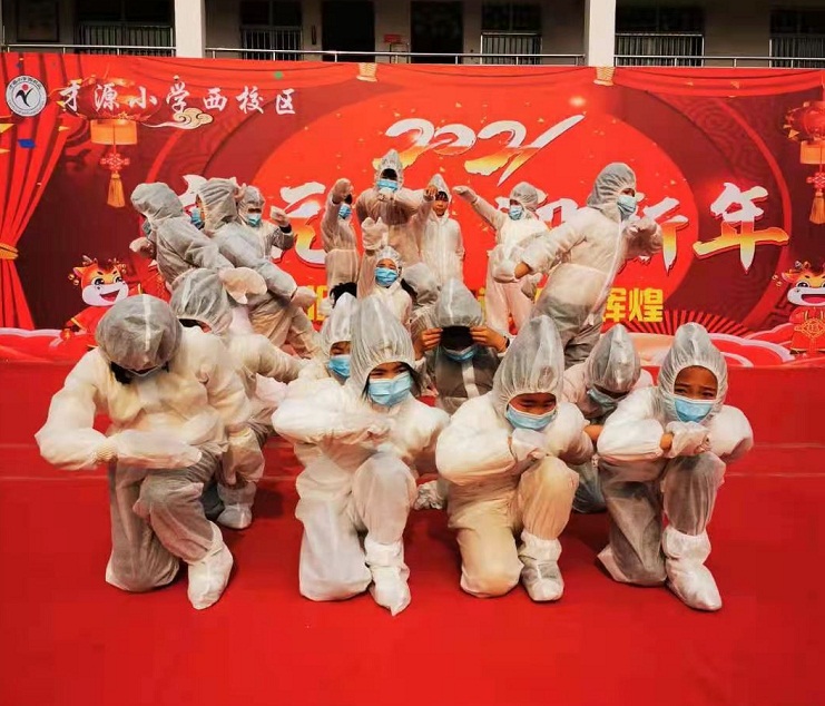 在该县才源小学西校区,三年级三班、四班、六班、八班合作编排了《与时间赛跑》情景剧,充分展示了在抗击疫情期间,医护人员奋勇当先的责任担当,逆行出征的义无反顾,风雨兼程的无私奉献。舞台上,孩子们的精彩表演,获得了阵阵掌声。