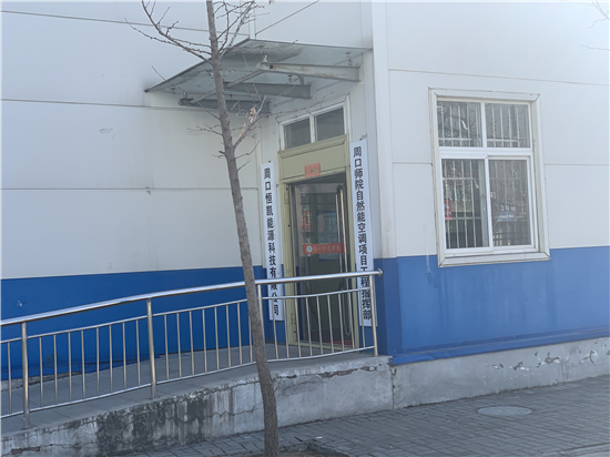 2020年12月30日上午,记者在位于嵩山路的周师西门处,隐约听到“轰轰”声,在周师西门向北约300米处,透过白色栅栏,记者看到一组被绿色铁皮围起来的空调外机,外机总长约20米,宽约5米,机组运行发出“轰轰”的响声。