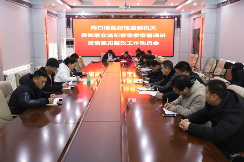 会议的主要任务是深入贯彻中央、省、市纪检监察工作要求,结合港区实际,认真整改省纪委监委监督调研反馈意见中存在的问题,举一反三,深刻排查,全面整改,确保整改工作落实、落地、落细。会议宣读了市纪委《关于统筹做好省纪委监委监督调研反馈意见整改落实工作的通知》和周口港区纪委监委《关于成立省纪委监委监督调研反馈意见整改工作领导小组的通知》。