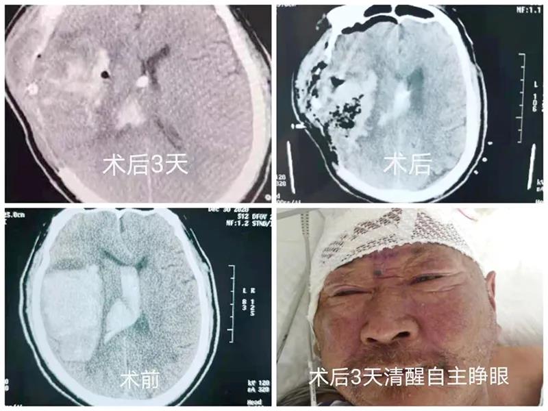 经术前必要检查检验,专家组根据现有病情,结合老人体质弱,制订了手术方案和多种突发情况下的应急预案,在家人大力支持下,老人被送入了手术室。张其云研判老人脑出血时间长、量大等难点,决定实施血肿清除去骨瓣减压、三脑室穿刺引流术。