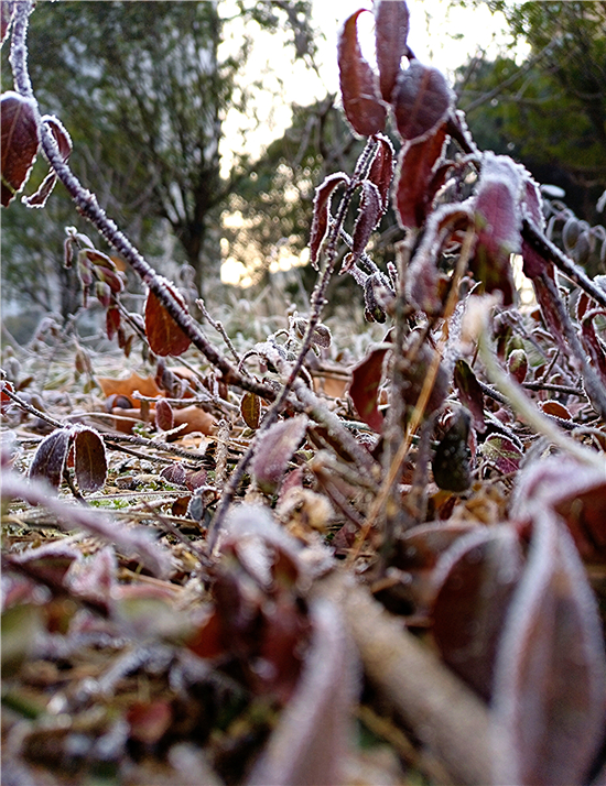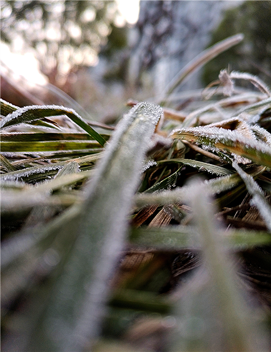 有诗云:“早寒青女至,零露结为霜。入夜飞清景,凌晨积素光。”1月6日,清晨时分,我市中心城区一层层雪白的霜花凝结在花草树木等植物上,晶莹剔透,令人惊艳,尤其在晨光的映照下,满目的霜花就像一层银光,把世界装点得格外美丽。③2