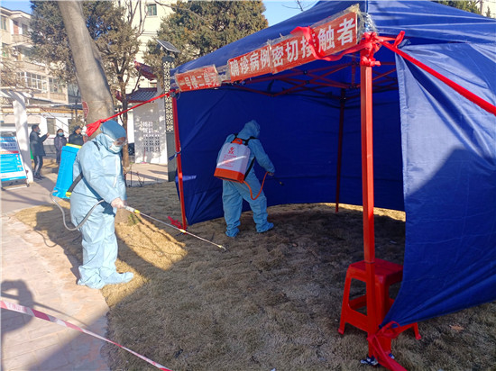 演练开始后,公安部门按照新冠肺炎疫情公共卫生应急处置预案要求,立即下达指令,派出所民警到达现场维护秩序,区域控制,拉警戒线,严格管控人员,禁止一切车辆和人员通行。街道办事处迅速组织社区干部及社区网格员开展核酸检测和宣传动员工作,根据应急预案分工开展群众宣传动员工作,并对患者居住单元电梯楼道等公共区域进行消毒。工作人员到确诊患者家对2名密切接触者进行流调和健康教育,将密切接触者用120负压救护车单人单车转运至集中医学隔离观察点,对确诊病例家庭环境进行采样和消杀。