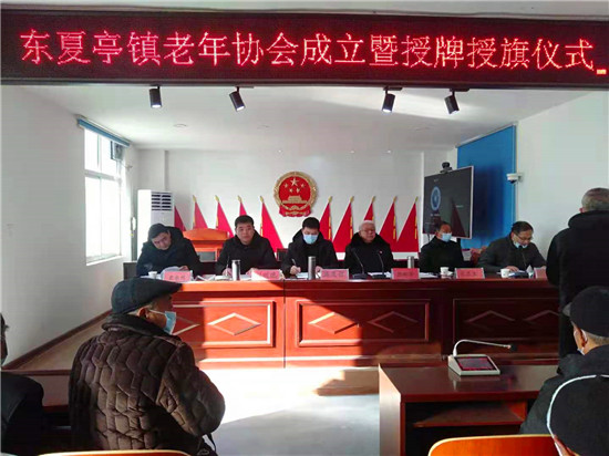 为搞好养老服务工作,增强老年人对社会发展成果的获得感,1月8日,西华县东夏亭镇举行老年协会成立暨授牌授旗仪式。全镇23个行政村的支部书记、村级会长及镇直单位有关人员60余人参加。党委副书记刘刚德主持,县老年协会会长张新芳、常务副会长宋彦生等人出席仪式。活动仪式上,组织委员刘建赏宣读了《中共东夏亭镇委员会关于成立镇、村老年协会的通知》。镇老年协会会长袁东然作表态发言。张新芳阐述了成立老年协会的重要意义和深远影响,对东夏亭镇老年协会工作提出了明确要求。宋彦生分析了中国人口老龄化的严峻形势,指出了成立老年协会的必要性和紧迫性,对镇村老年协会的工作进行了部署。