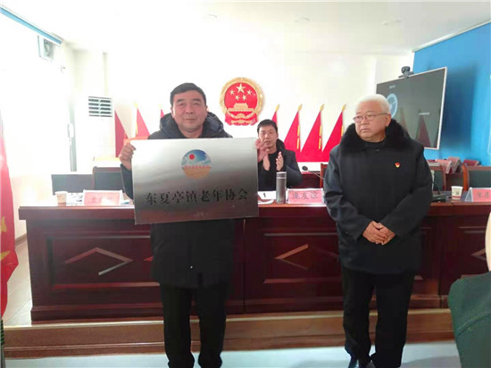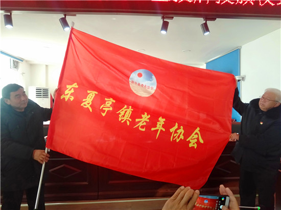 接着,张新芳代表县老年协会向东夏亭镇老年协会进行授牌授旗。