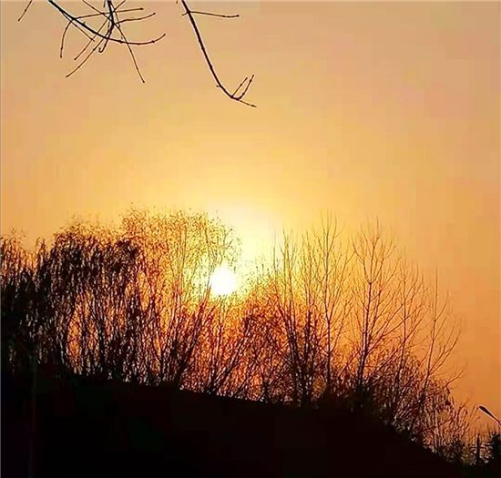 近日,我市接连几天阳光灿烂,蔚蓝的天空格外美丽。尤其是傍晚时分,夕阳西下,近处的树干枝丫映衬着远处绚丽的天空,就像一副绝美的画卷,令人沉醉。